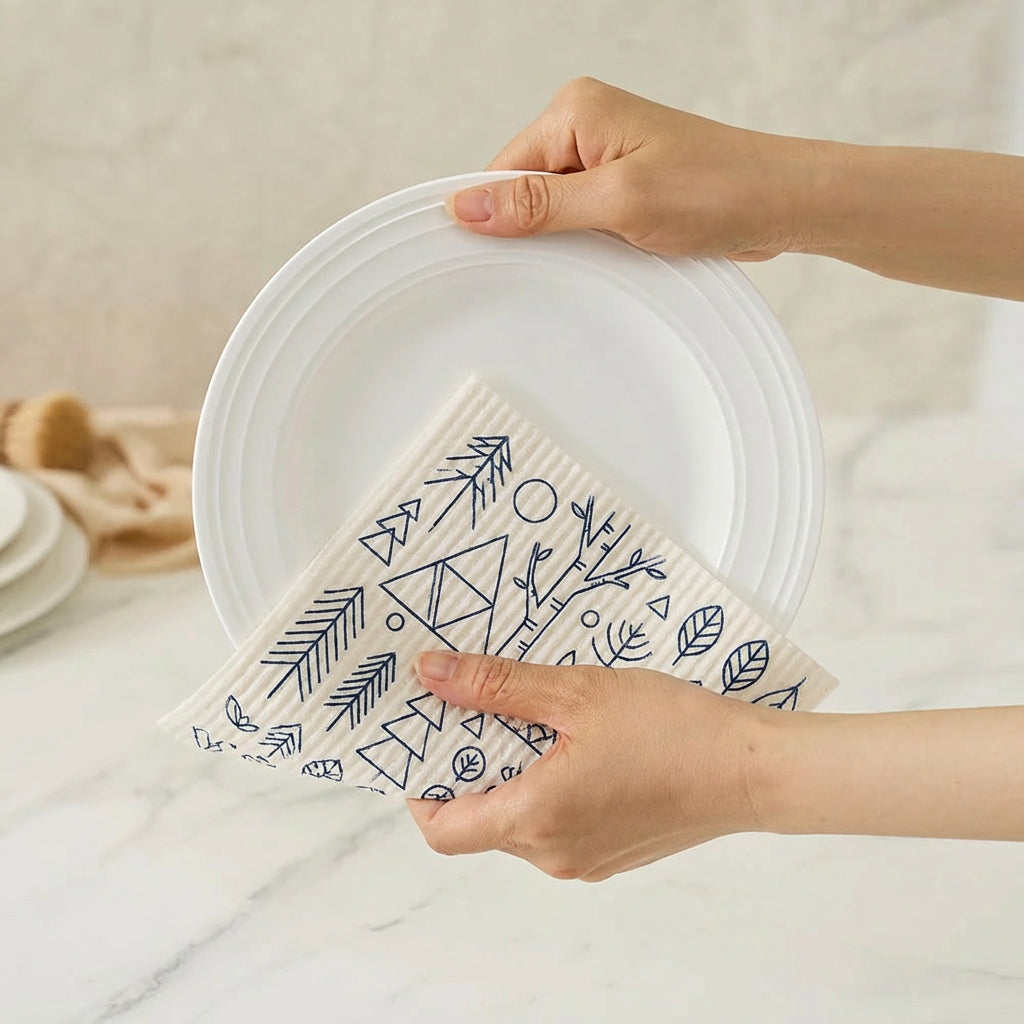 These cleaning wet wipes are made from sustainable super-fine fibers, 30% cotton, and 70% cellulose wood pulp, ensuring they only biodegrade in your compost.These eco-friendly cloths are reusable and replace traditional sponges and paper towels. Printed with permanent, water-based inks, they’re machine washable and designed to last.